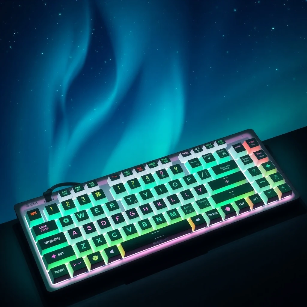 Aurora Borealis Keyboard, Geometric Cut Design, Illuminated Keys for Gaming